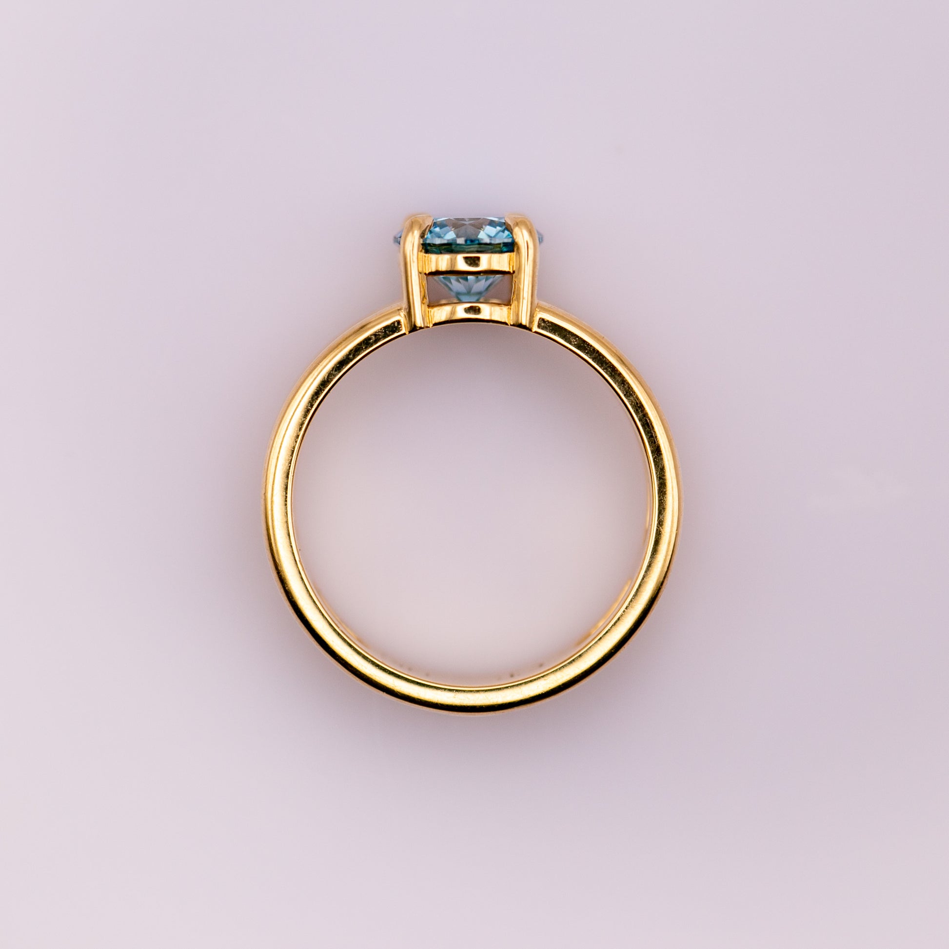 At the heart of this design is a 1.6 carat fancy vivid blue lab-grown diamond, glowing with exceptional brilliance. Its vibrant color and fire make it a truly mesmerizing centerpiece.